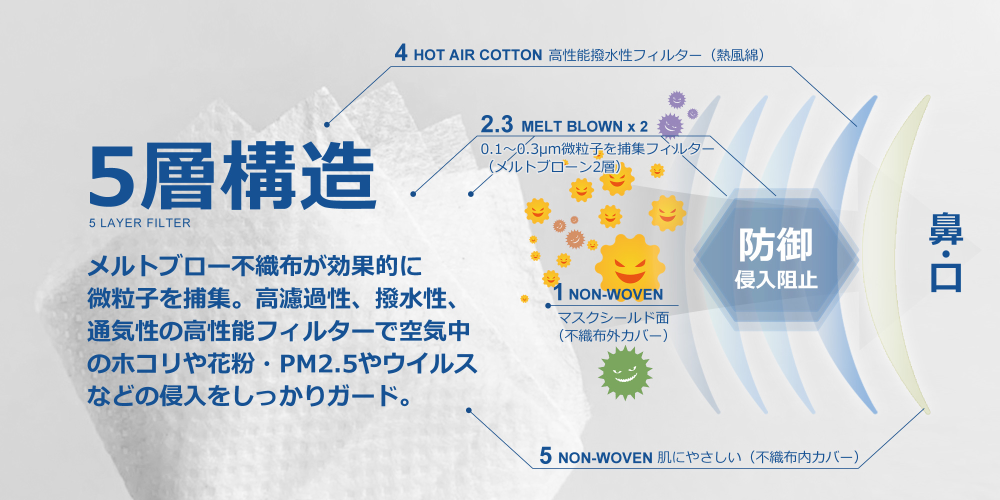 ● マスクは感染(侵入)や異物を完全に防ぐものではありません。
